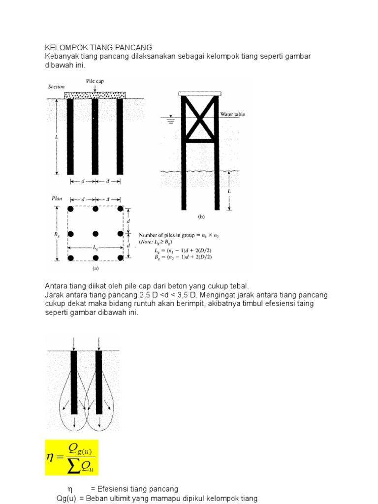 Tebal beton di sekeliling tiang pancnag paling sedikit 15 cm dan harus diberi baja tulangan untuk mencegah terjadinya keretakan. Kekuatan pile cap kekuatan yang dapat 11. Karena itu, alat ini sangat cocok untuk digunakan pada area pembangunan yang tidak terlalu luas. Daya dukung sstiap tiang lebih besar sehingga beton tumpuan (pile cap) dapat dibuat lebih kecil.