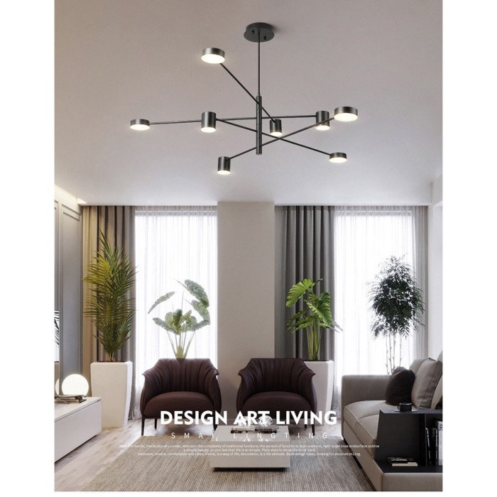Sofa ruang tamu modern ini minim unsur kayu dan juga menitikberatkan pada kegunaan dan juga kepraktisan. Dinding bercat putih dengan hiasan chandilier dengan beberapa lemari berisi pajangan favorit kamu. Ruang tamu didesain tanpa pintu dengan dapur. Terdifusi pada area yang lebih luas task lighting ambient lighting.